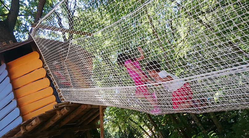 Ici pas d’équipement spécifique mais un grand terrain de jeux pour les enfants qui ont soif d’aventure ! Accessible dès 2 ans, au Bois des Lutins on grimpe dans les arbres grâce à de grands filets sécurisés, on franchit des passerelles et découvre de petites cabanes dans les arbres où se cachent les lutins ! En plus de grimper aux arbres, le Bois des Lutins c’est de nombreux jeux à partager en famille et avec les copains : tyroliennes, filets et boules géantes, nids volants, luge, jeux gonflables, karts à pédales, matelas à eau…