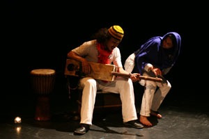 Assis tout autour de la scène faite d’un tapis de sable lui-même entouré de bougies, le public s’est laissé emporter dans ce conte venu de loin. Sur scène ils sont trois, mais incarnent plusieurs personnages. La musique donne le rythme, l’histoire est tantôt contée, tantôt jouée ou encore chantée et même dansée.