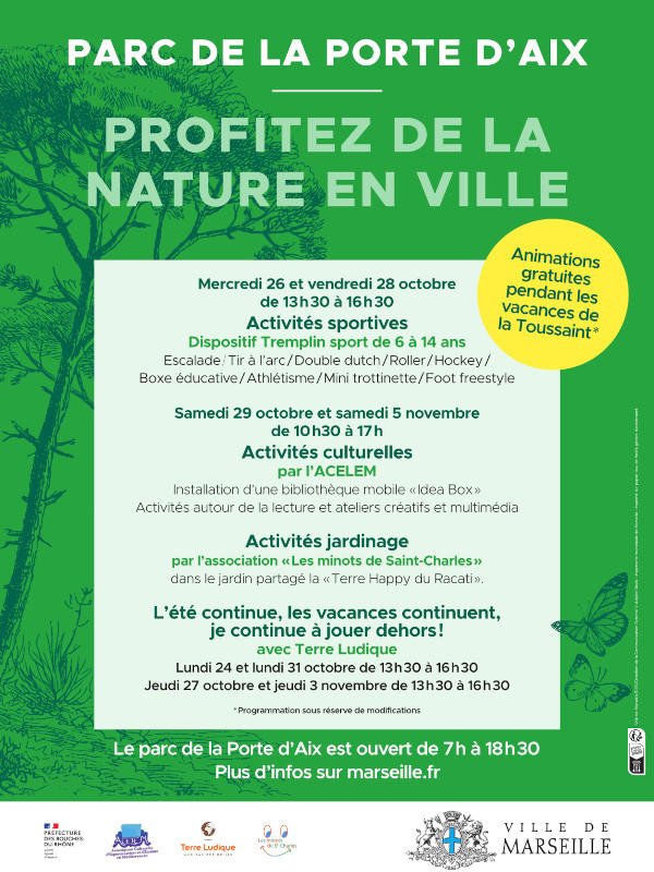 Pendant les vacances de la Toussaint, rendez-vous au Parc de la Porte d’Aix pour des animations gratuites.