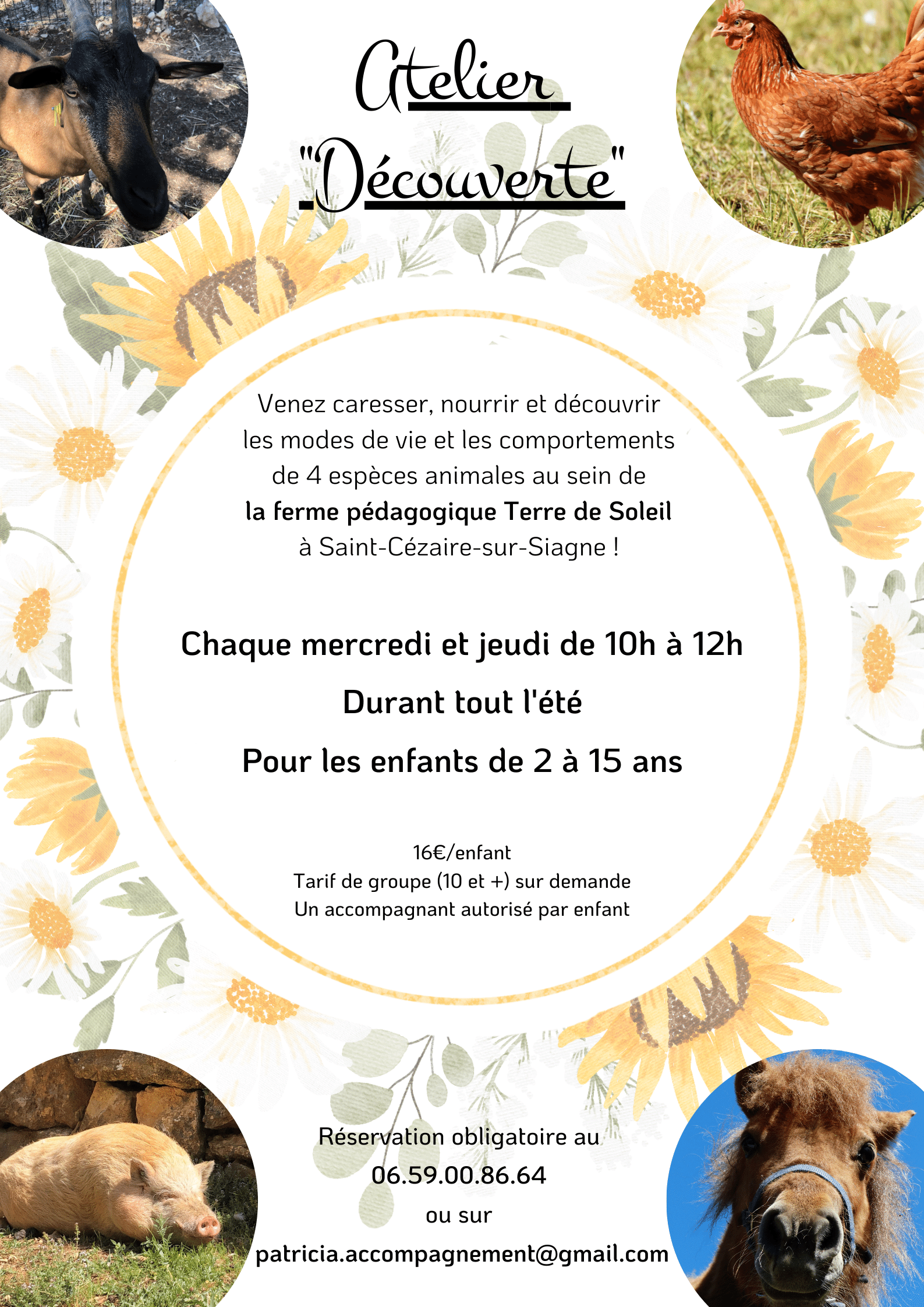 Durant les mois de juillet et d’août, tous les enfants sont invités à partir à la découverte de 4 espèces animales présentes au sein de la ferme pédagogique Terre de Soleil à Saint-Cézaire-sur-Siagne :