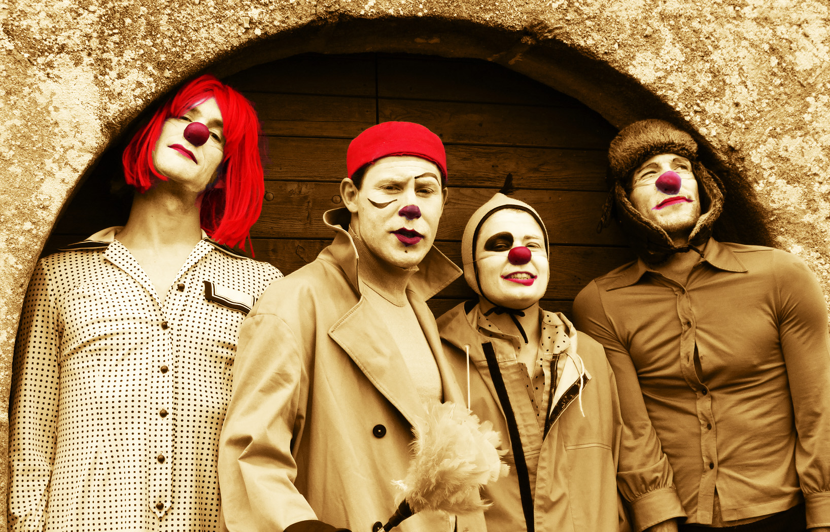 Quatre clowns entrent sur la piste pour un rituel sacré ou quotidien, prêts à déjouer les codes et les traditions.