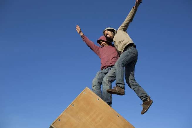 Deux hommes en mouvement, en équilibre ou en chute… sont en migration. Sur leur dos, une boîte en bois brute, pesante comme leur passé, vide comme leur avenir. Sans un mot, ils défient les lois de la pesanteur et mènent une danse au rythme de cette boite. Leurs corps parlent, le danger menace mais la prise de risque est joyeuse et victorieuse. Ils tracent ainsi leur chemin vers une nouvelle vie, avec la légèreté et la désinvolture des jeunes gens plein de force et d’espoir et nous embarquent dans leur odyssée.