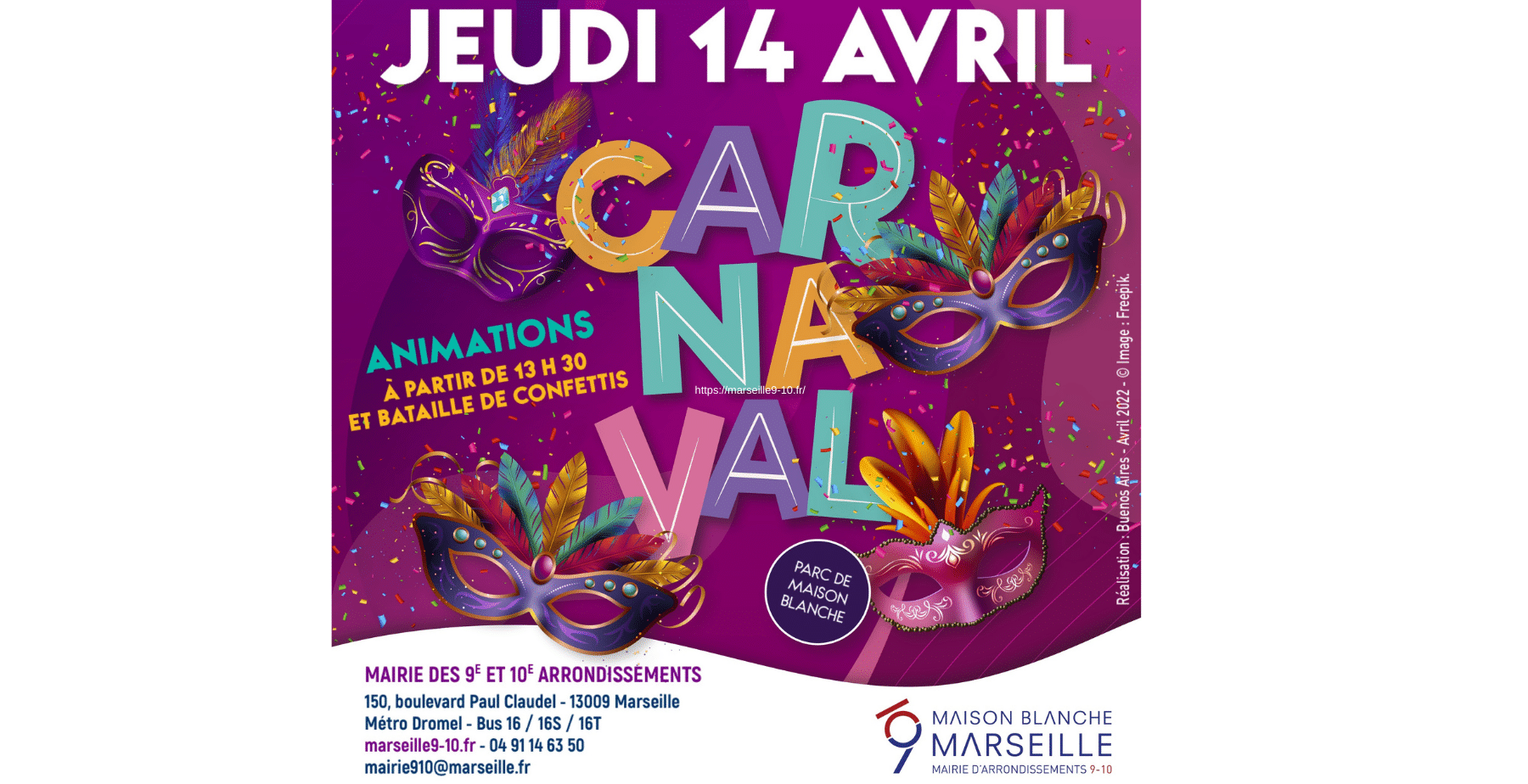 Rendez-vous le jeudi 14 avril dans le Parc de Maison Blanche pour le Carnaval !
