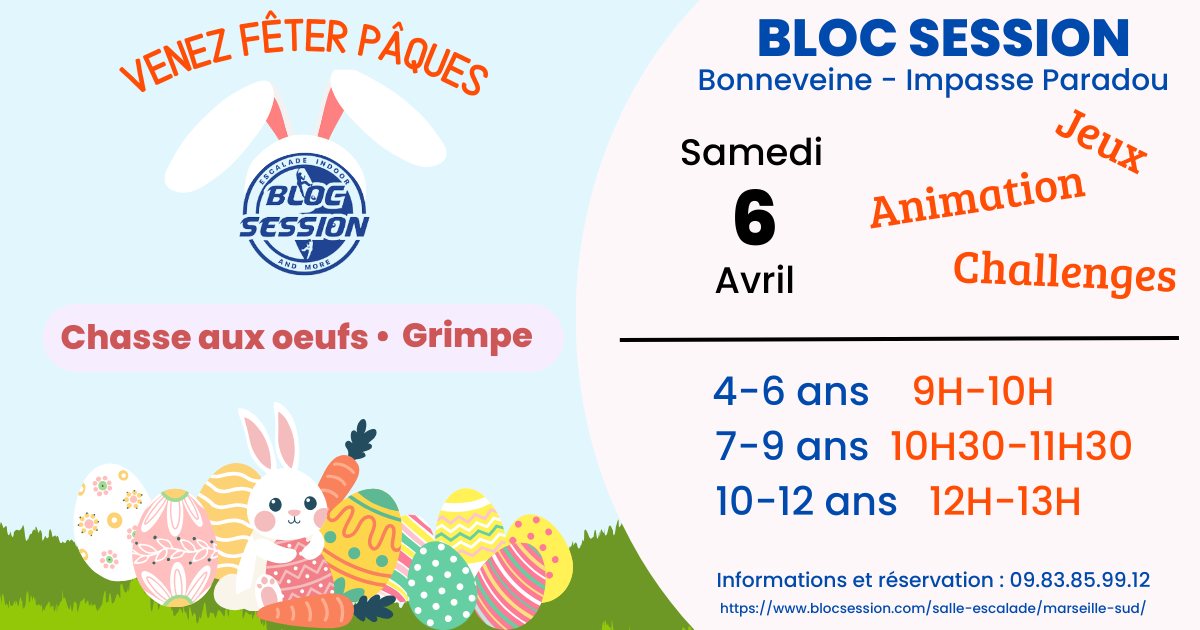 Les cloches sont passées chez Bloc Session ! Rendez-vous samedi 6 avril pour grimper et dénicher les œufs en chocolat !