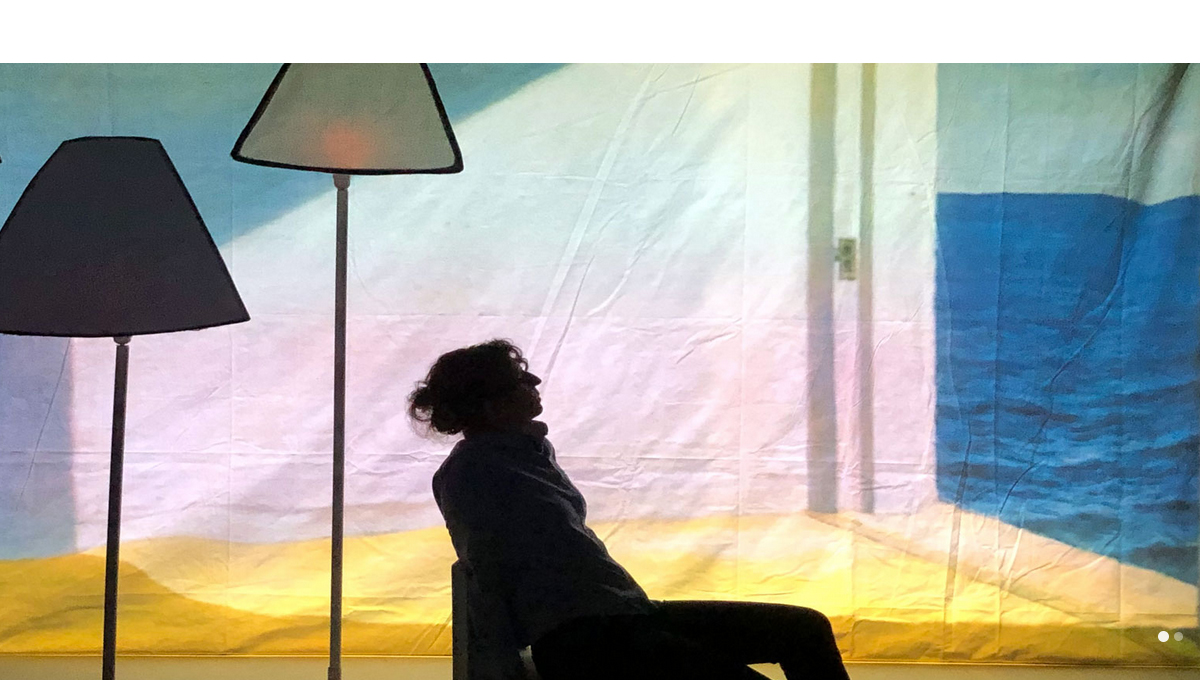 Sur scène, une comédienne, trois abat-jours, une chaise. Un petit salon en deux dimensions qui semble dessiné, tout comme la robe de la femme qui nous accueille : ce que nous voyons est peut-être la double page d'un livre qui a été ouvert dans cet espace. Dans un cadre sur le fond, un bonhomme dessiné par un enfant semble frémir et vouloir prendre vie. C'est le début du spectacle mais aussi le commencement, par ce premier autoportrait, de la conquête de sa place dans le monde, de la représentation de soi, d'une histoire, de l'histoire de l'art. L'occasion pour un voyage à travers les époques qui explore par l'image et l'image animée, le jeu et le chant, les infinies façons que l'humanité a adopté pour se représenter, pour se montrer aux autres en dessin, peinture, sculpture. Pour laisser la trace de son passage dans le monde.