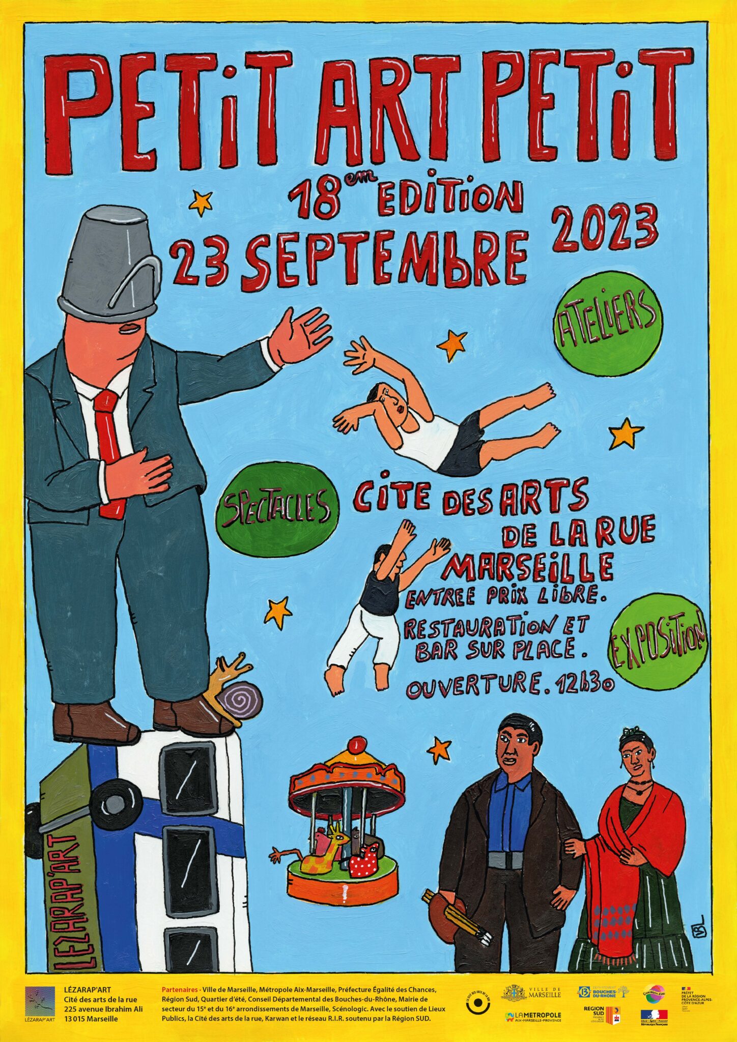 Petit Art Petit est une manifestation où toutes les disciplines s’entrecroisent et se déclinent en médiums très divers, œuvres plastiques, arts scéniques, proposant une programmation artistique pluridisciplinaire de qualité et variée qui reflète la diversité culturelle de la ville de Marseille. Les spectacles proposés sont à destination d’un public familial et jeune public .