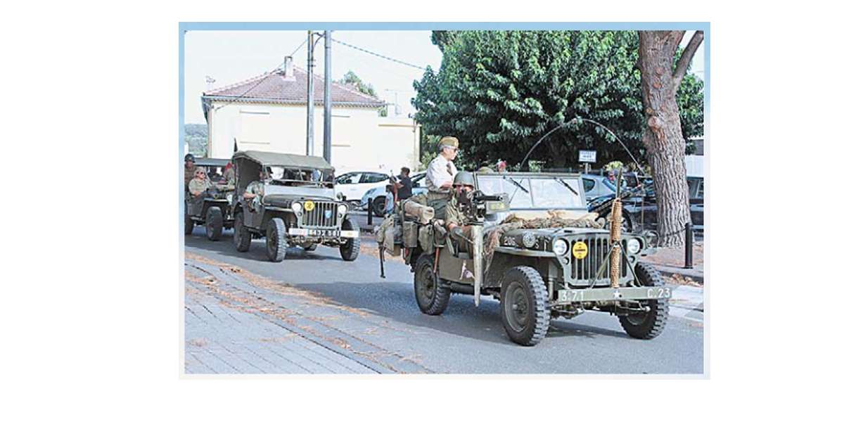 Cortège d’anciens véhicules et de figurants en costumes d‘époque.