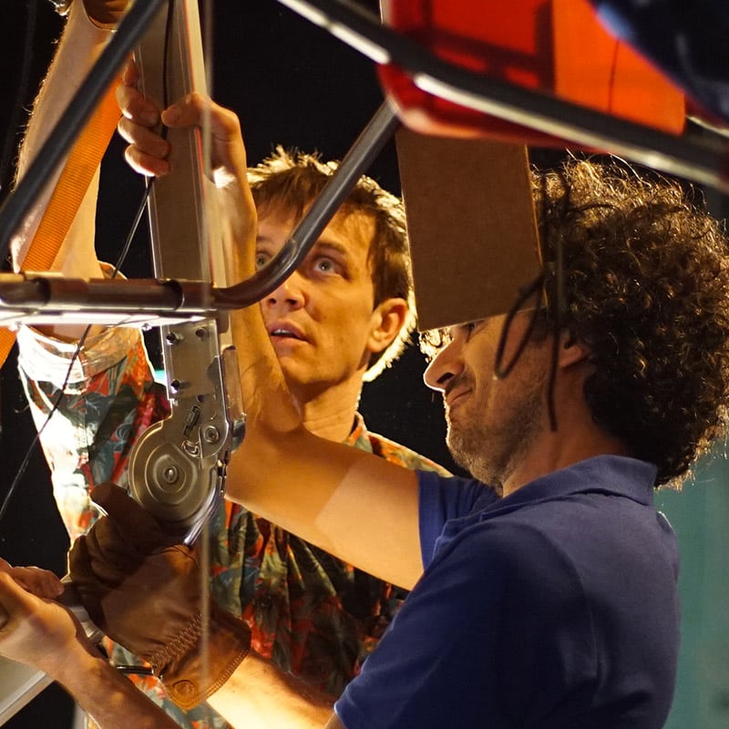 Au cœur de cette école, deux acteurs-accompagnateurs exposent l’architecture et les clefs de leurs enseignements. Ils s’appuient sur un grand nombre de témoignages d’individus qui dans leur métier ou leur vie quotidienne prennent des risques. Passant à la pratique, ils invitent les spectateur·rices à rencontrer une nouvelle promotion d’apprenti·es du risque.