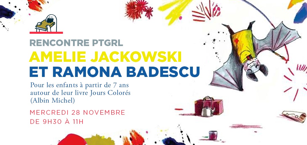 Rendez-vous mercredi 29 novembre de 9h30 à 11h à la Librairie Pantagruel pour rencontrer Amélie Jackowski et Ramona Badescu autour de leur livre Jours Colorés.