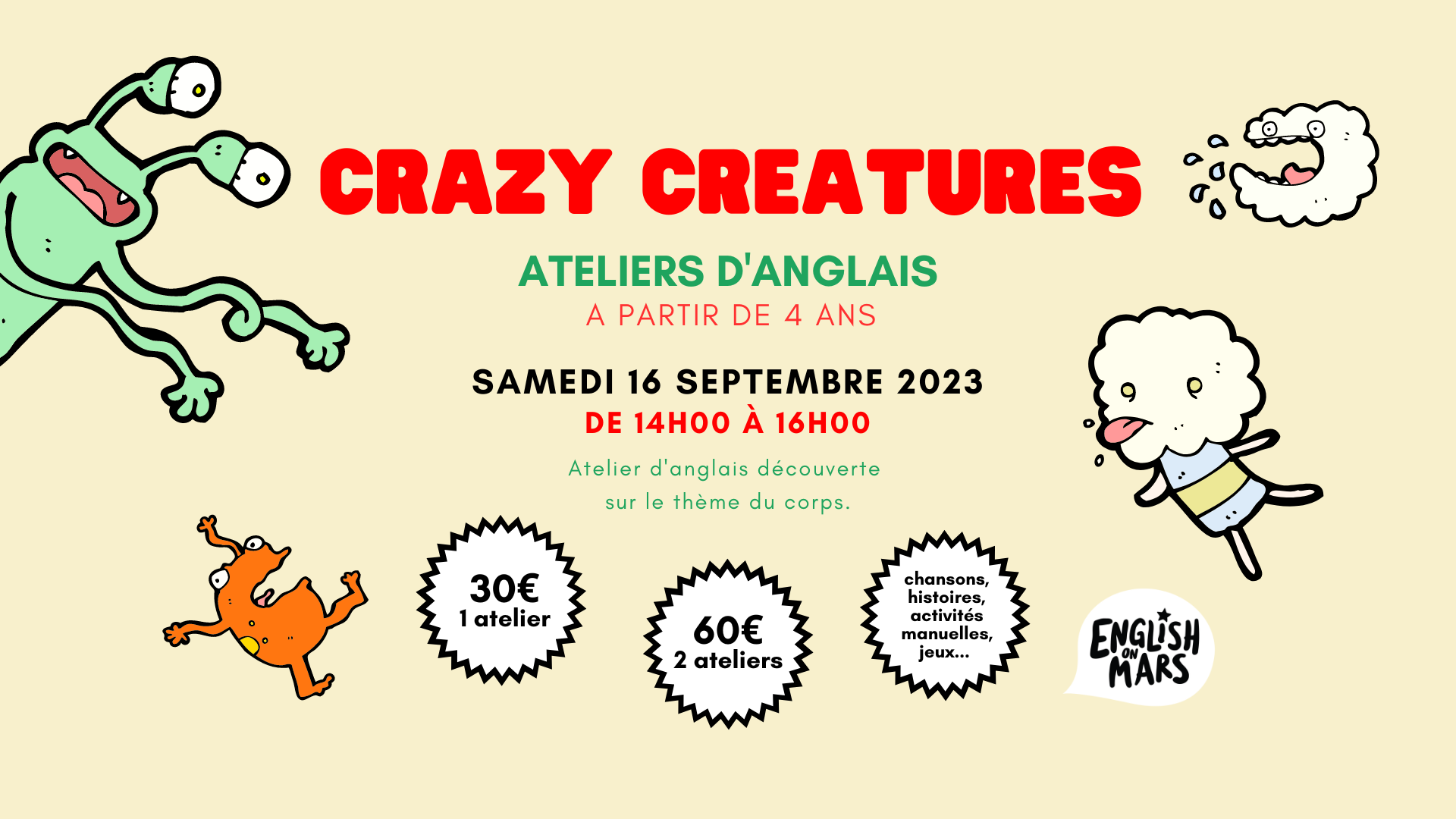 RENTRÉE 2023-2024 : Ateliers d’anglais découverte « CRAZY CREATURES »