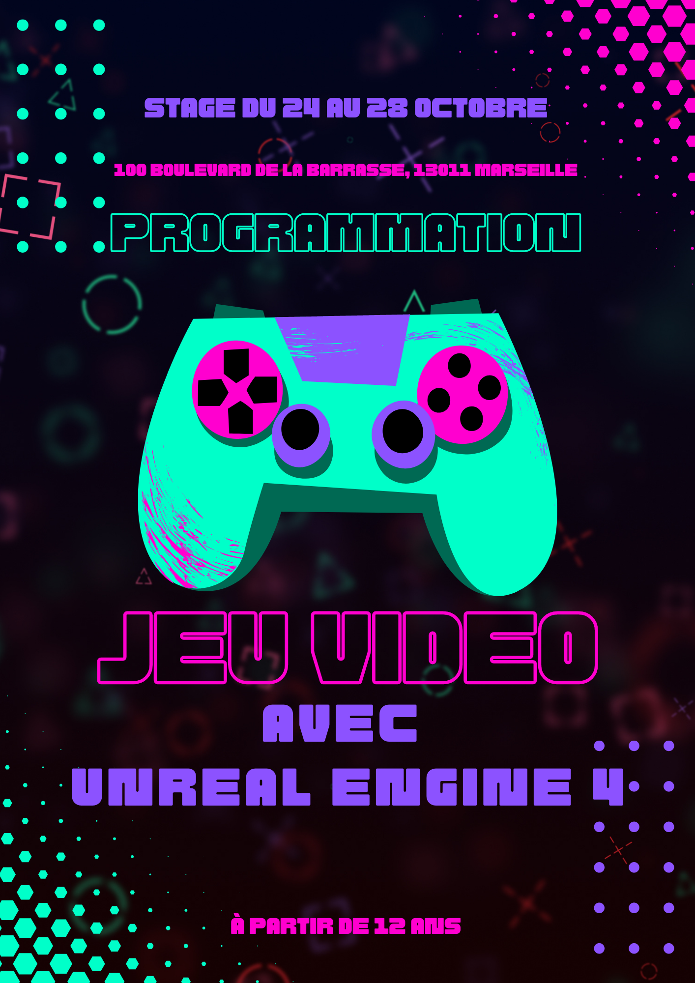 Accueil agenda - Que faire en famille ? Stage création de jeux vidéo Stage création de jeux vidéo Venez découvrir le métier de créateur de jeux vidéo, du scénario jusqu’au codage informatique, pendant les vacances scolaires ! Inscription sur contact@icomprovence.net Étiquettes : + de 12 ans Date 24 - 28/10/22 Expiré! Heure Ajouter un jour Tarif 100.00 € Pour qui ? + de 12 ans Lieu ICOM'Provence 100 Boulevard de la Barasse, 13011 Marseille Catégorie Stage
