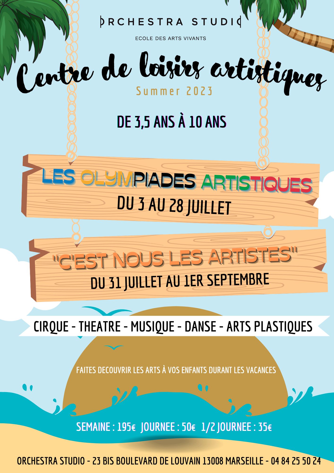 Découvrez notre nouveau programme multi-activités autour des arts vivants pour offrir à vos enfants des vacances inoubliables dans une ambiance stimulante, ludique et décontractée ! En août 2023, le thème est "C'EST NOUS LES ARTISTES !" Vos enfants pourront écrire, jouer, découvrir, s'éveiller et s'égayer avec un programme palpitant. Au cours du mois, ils pourront créer une fresque, découvrir l'art du recyclage en utilisant des matériaux recyclés tels que des bouteilles en plastique, des cartons, des papiers ou des tissus pour créer des œuvres d'art originales et durables. Ils expérimenteront également les graffitis sur des toiles, en utilisant des pochoirs ou des bombes de peinture pour créer des œuvres d'art uniques. Offrez à vos enfants une expérience artistique inoubliable en les inscrivant dès maintenant !