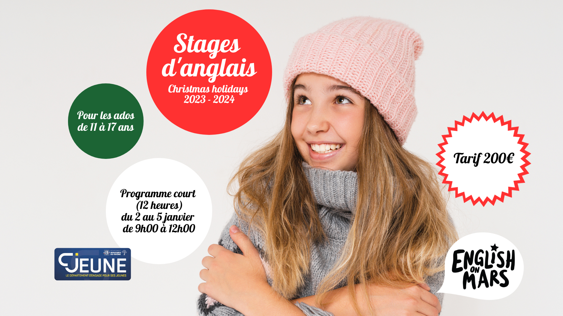 Pendant les vacances de Noël, English on Mars propose un stage d’anglais à destination des adolescents (collégiens et lycéens). Nos stages offrent aux ados la possibilité de développer leur capacité à parler et à écouter en anglais.