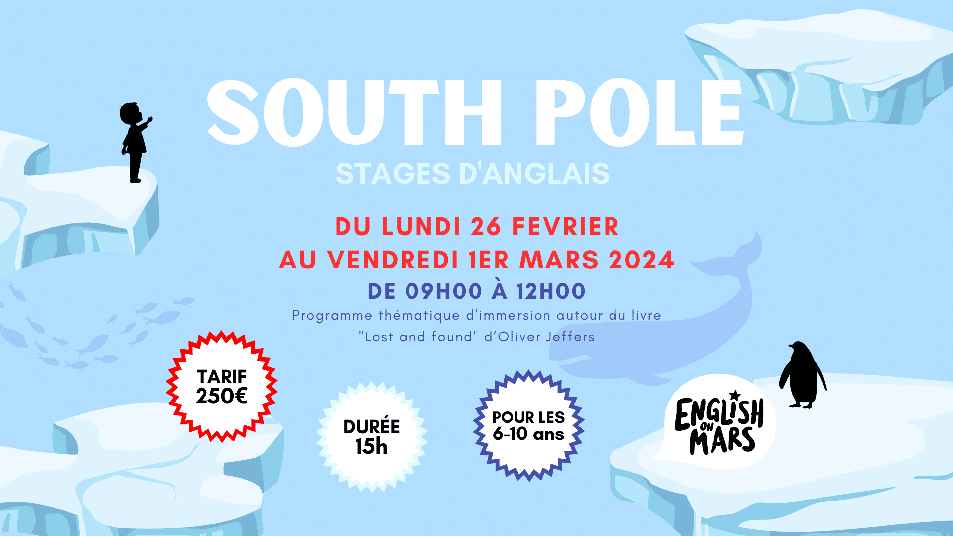 Accueil agenda - Que faire en famille ? SOUTH POLE : Stages d’anglais des vacances d’hiver (6-10 ans)