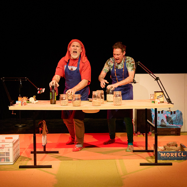 Carottes, farfalles et haricots secs sont les acteurs de cette épopée économique. Le sel se fait désert aride, les boîtes de pâtes supermarché. Un théâtre d’objet parfois amplifié par caméras et vidéoprojecteur.