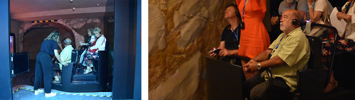 C’est le moment de prendre place à bord des modules d’exploration, nacelles pouvant accueillir jusqu’à six voyageurs pour découvrir celle que tout le monde attend, la Grotte Cosquer ! Pour vous guider dans cette expérience, des oreillettes sont remises… La visite se fait dans le silence, les yeux bien grands ouverts.